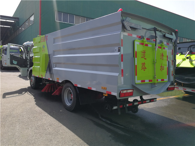 8、左右立掃為雙掃盤,掃刷上加裝噴水裝置,用于噴霧降塵。左右立掃分開控制,可實(shí)現(xiàn)右掃和全掃等不同的作業(yè)模式。